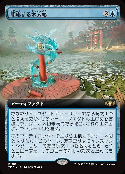 訳文順応する木人椿の最後の能力が解決された後、そのターンにあなたが唱えた次のインスタント呪文またはソーサリー呪文は、対象があるかどうかに関係なくコピーされます。